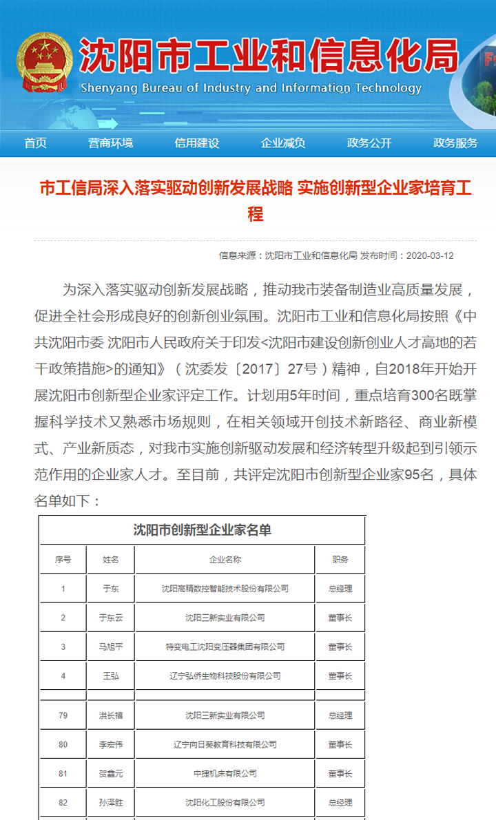 2020年03月12日,于東云董事長、洪長禧總經(jīng)理被沈陽市經(jīng)信委授予2019年度沈陽市創(chuàng)新型企業(yè)家稱號。這是對我公司一直以來實施創(chuàng)新戰(zhàn)略成果的肯定,也是對于總和洪總領(lǐng)導(dǎo)下以設(shè)計研發(fā)人員和技術(shù)人員為代表的全體員工創(chuàng)新精神的褒獎!