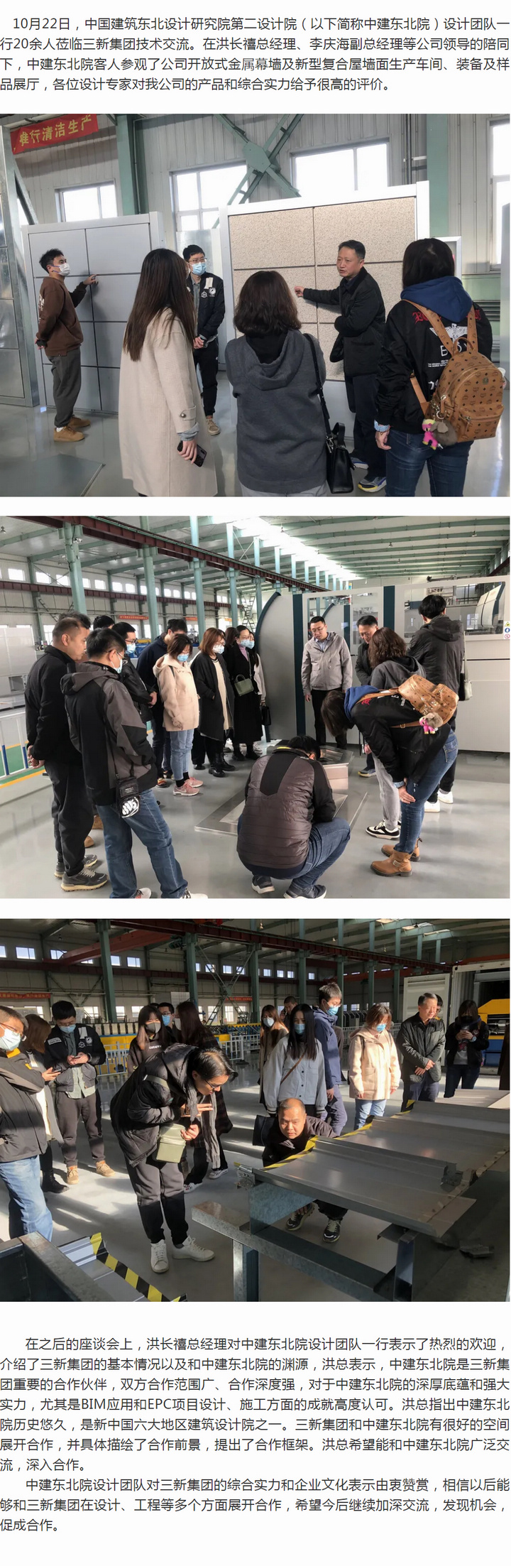 交流合作,共贏未來——中國(guó)建筑東北設(shè)計(jì)研究院第二設(shè)計(jì)院設(shè)計(jì)團(tuán)隊(duì)蒞臨三新集團(tuán)考察交流