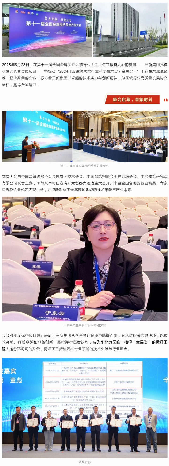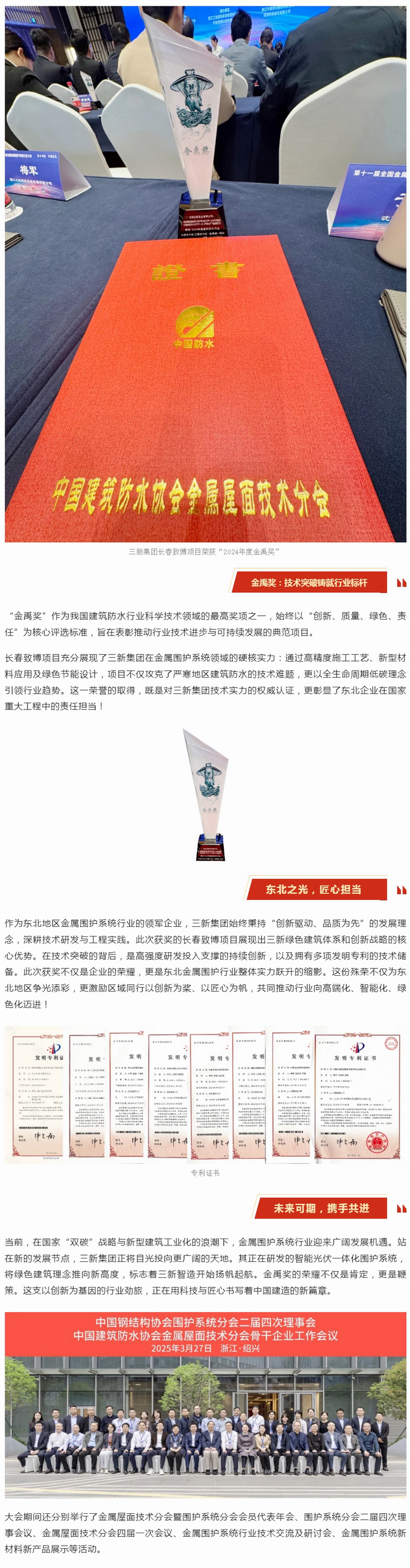 三新集團榮膺金禹獎,為東北地區(qū)金屬圍護行業(yè)添彩!
